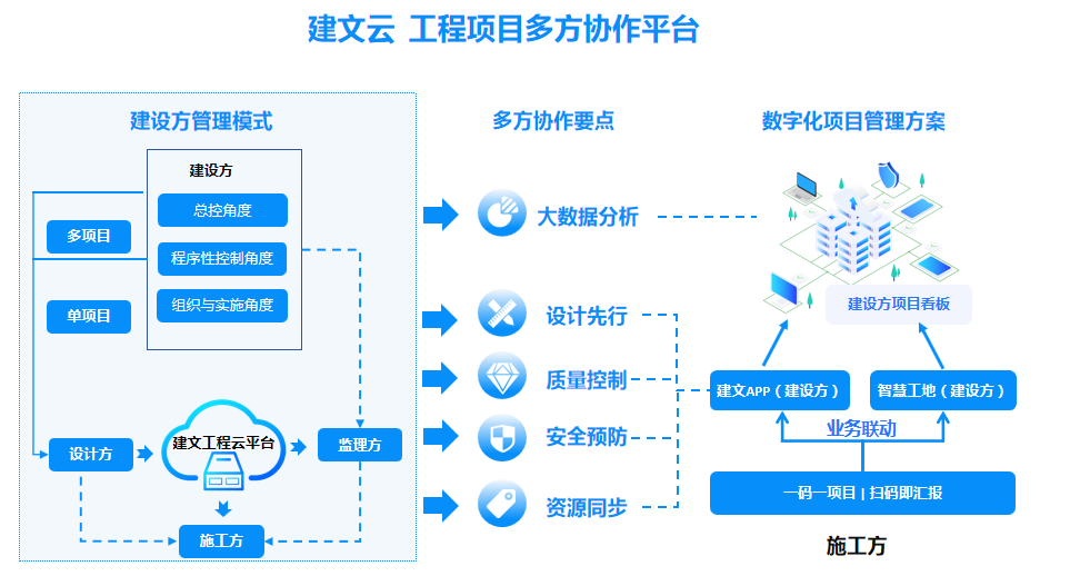 建文云-運(yùn)河工程建設(shè)項(xiàng)目管理信息化、數(shù)字化解決方案以設(shè)計(jì)為龍頭、合同為約束、以進(jìn)度為主線、以投資控制為核心,構(gòu)建投資方、設(shè)計(jì)方、施工方、監(jiān)理方、供應(yīng)商的多方協(xié)作平臺(tái)。系統(tǒng)不僅實(shí)現(xiàn)了設(shè)計(jì)、招采、投資、進(jìn)度、合同、支付結(jié)算、施工現(xiàn)場、質(zhì)量、安全信息等投資項(xiàng)目業(yè)務(wù)處理細(xì)節(jié),還預(yù)留了與BIM軟件、工程造價(jià)軟件、營改增財(cái)務(wù)軟件、OA、ERP、HR等異構(gòu)系統(tǒng)的數(shù)據(jù)接口,實(shí)現(xiàn)了系統(tǒng)的靈活擴(kuò)展和集成。