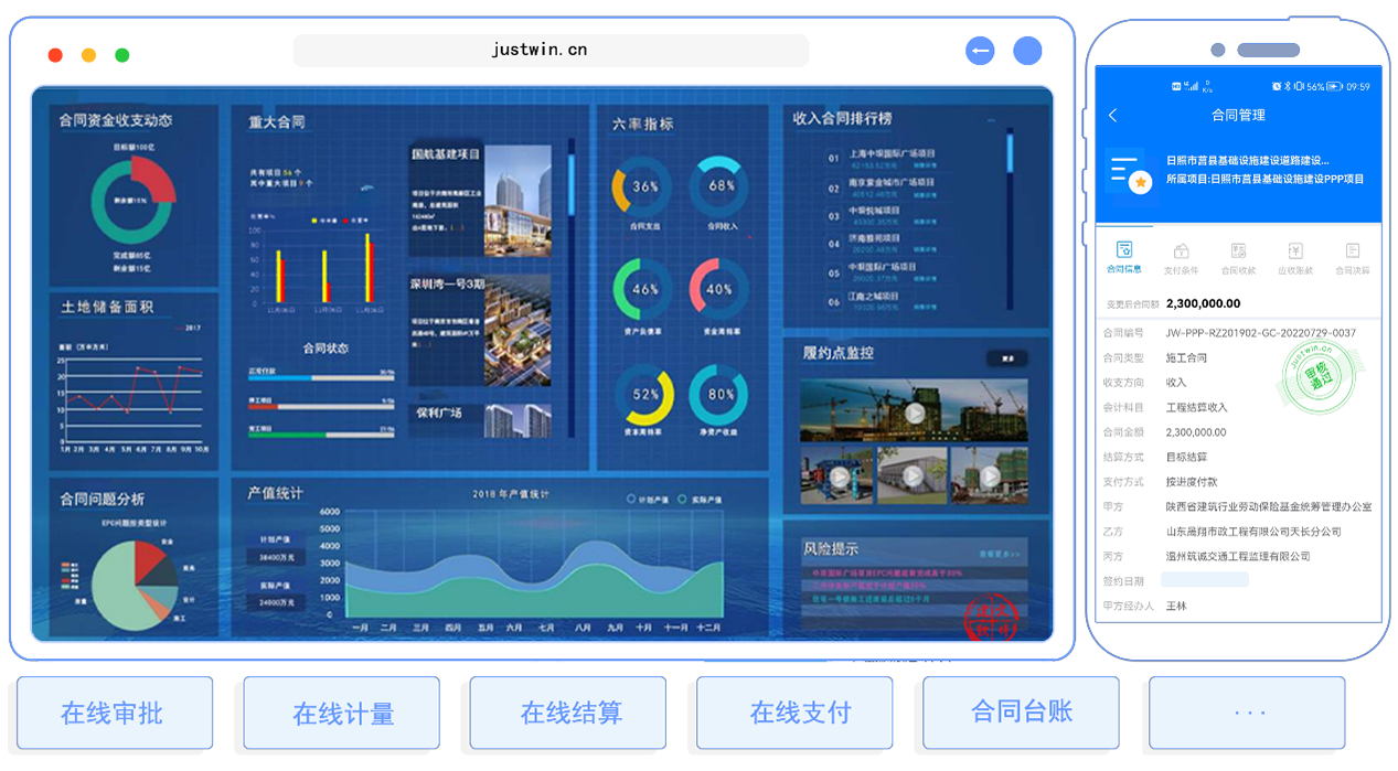 在功能上,以概算分解、合同分解、設(shè)計(jì)圖紙、質(zhì)量控制單元、進(jìn)度計(jì)劃分解為基礎(chǔ),實(shí)現(xiàn)工程進(jìn)度、質(zhì)量、成本三者的綜合協(xié)調(diào)控制和管理,運(yùn)用項(xiàng)目預(yù)測方法,及時(shí)有效地對項(xiàng)目成本、進(jìn)度、質(zhì)量、資金狀態(tài)進(jìn)行監(jiān)控和預(yù)測,提高決策準(zhǔn)確性、科學(xué)性,有效地保障工程建設(shè)進(jìn)度、質(zhì)量、成本三大控制目標(biāo)的實(shí)現(xiàn)。