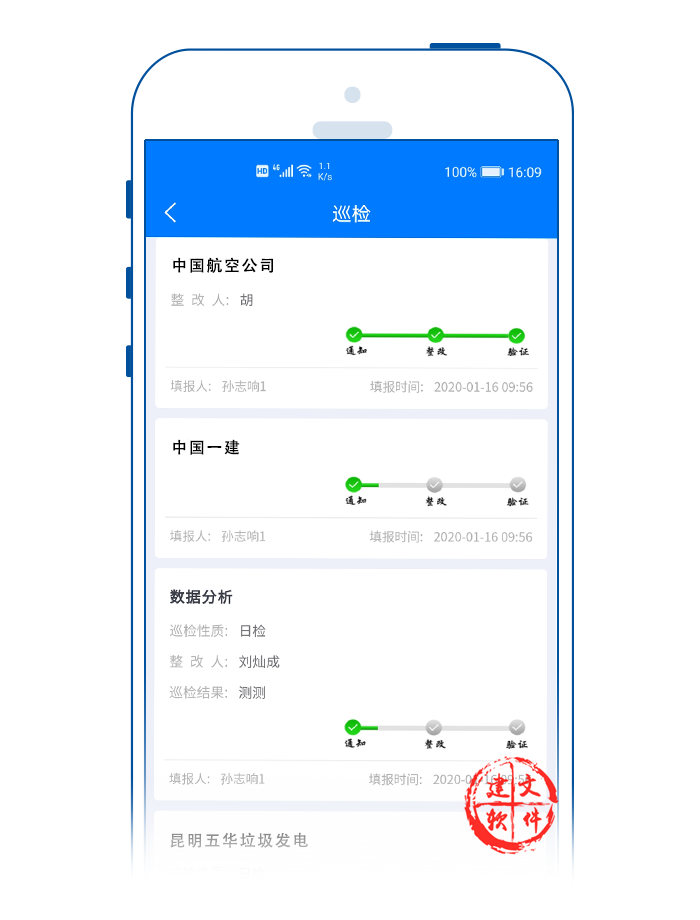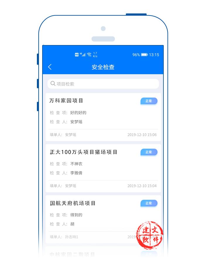 建文app安全檢查APP,支持定期檢查、日常巡回檢查、季節(jié)性檢查和節(jié)假日檢查、班組的自檢和交接檢查;目標(biāo)就是通過手機預(yù)知危險和消除危險。