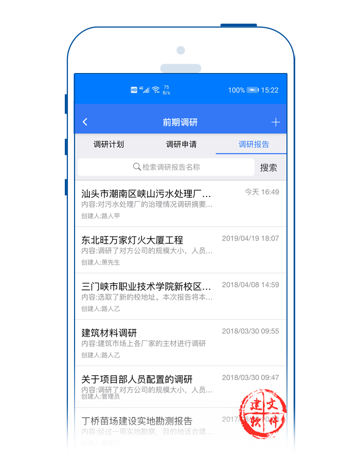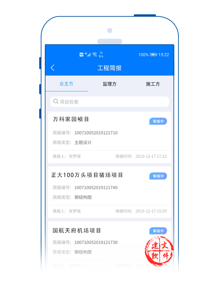 建文項目立項APP,支持在手機端快速立項,建立項目基礎(chǔ)信息庫,支持:立項評審、審批、備案、核準(zhǔn)的移動APP化與移動端的快速檢索。