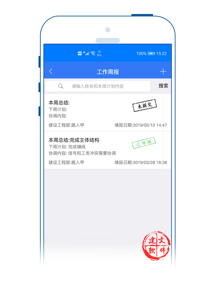 建文云周報,隨時隨地寫周報、審周報。