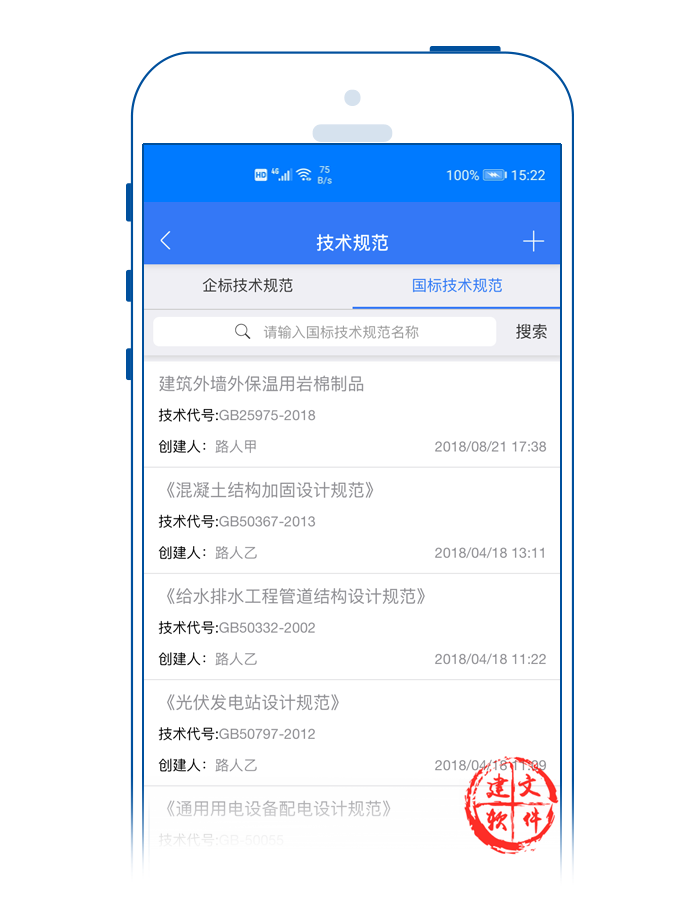 建文技術(shù)規(guī)范APP,支持“企標(biāo)”、“國標(biāo)”與“行標(biāo)”,主要功能包括: