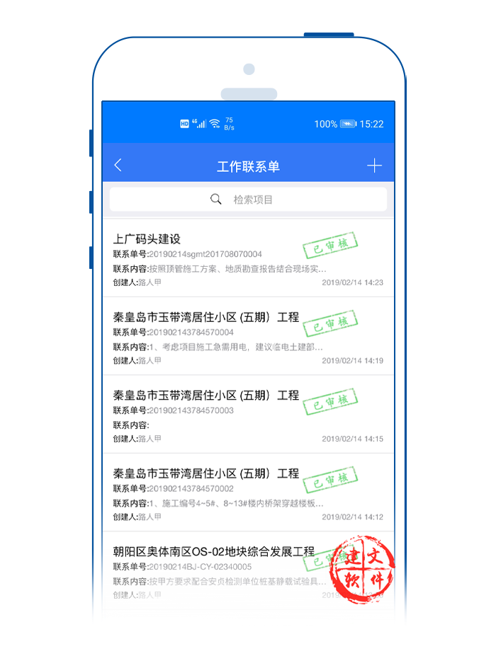 建文app工程聯(lián)系單APP,用于甲、乙雙方日常工作聯(lián)系。支持甲方、監(jiān)理(或設(shè)計)方、施工方在線簽認(rèn)。