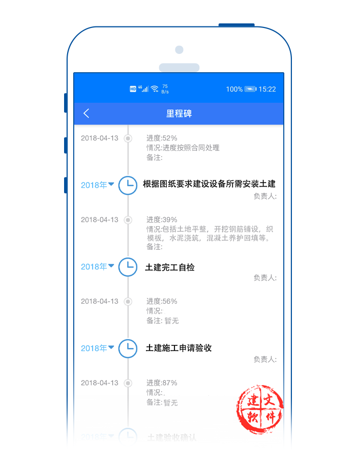 項目里程碑為什么如此重要?使用建文app里程碑APP,可以輕松確定關(guān)鍵日期——建文app里程碑APP可以更容易地看到項目的全局,把握項目施工的細(xì)節(jié)。