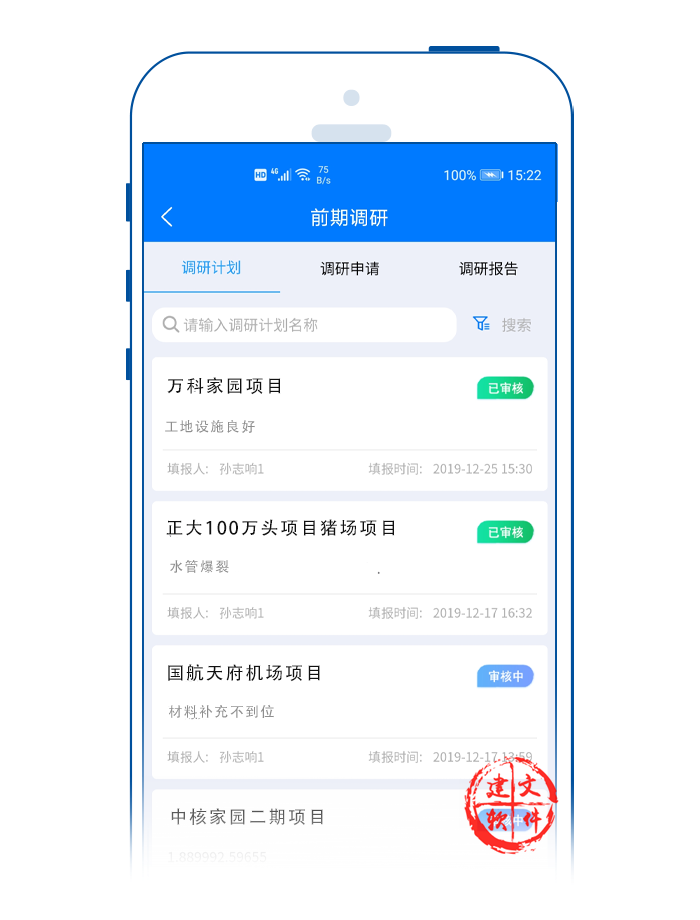 1) 支持手機APP上報調(diào)研計劃、調(diào)研申請、調(diào)研報告;