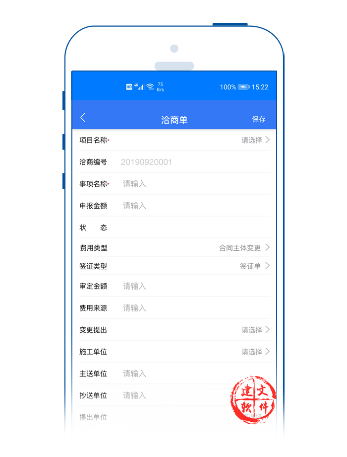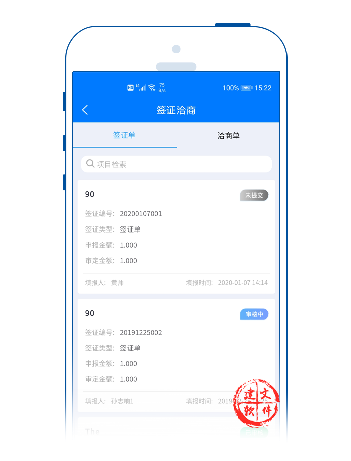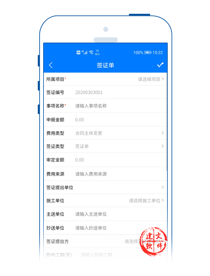 建文app簽證APP,支持多個設(shè)計變更單對應(yīng)一個簽證單;支持費用簽證、工期簽證或者費用+工期簽證等多種形式。