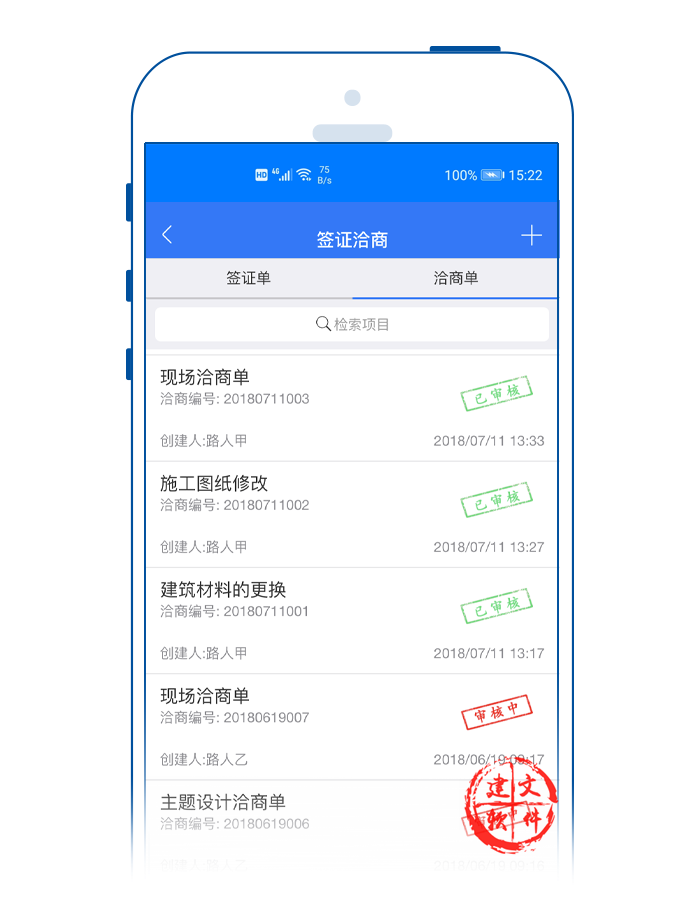 建文app洽商APP,既支持對工藝、材料、工期問題的核定;也支持工程量清單的增減;可通過建文APP進行建設(shè)方、監(jiān)理方、設(shè)計方、施工方的四方簽認(rèn)與輸出打印。
