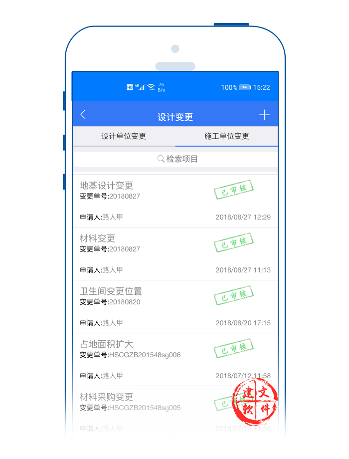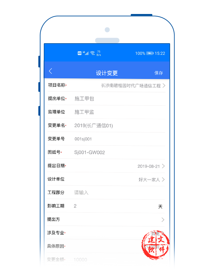 2)支持建設(shè)單位、設(shè)計單位、施工單位或監(jiān)理單位中的任何一個單位在線通過APP提出設(shè)計變更;