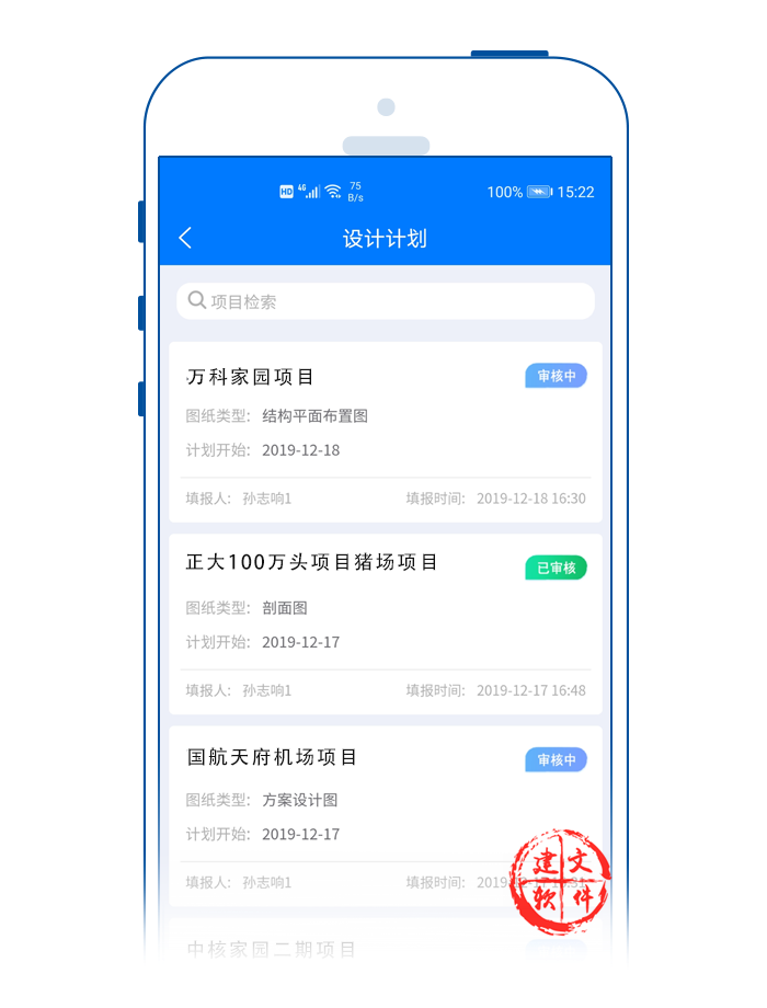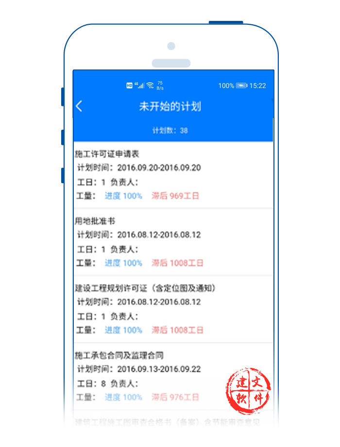 設(shè)計計劃對于工程項目能否按時完成具有重要的意義,在實際工作中,不僅設(shè)計工作進度會影響項目整體進度,而且設(shè)計方案、總體規(guī)劃、工程選材等方面的設(shè)計工作質(zhì)量也會影響項目進度。建文設(shè)計計劃APP支持: