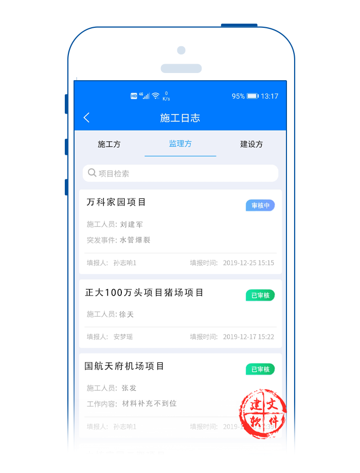 建文智慧工地app旨在為項目現(xiàn)場打造以“工程”和“人”為核心,以進度為主線、以合同為約束、以施工現(xiàn)場統(tǒng)籌為目標(biāo)的多方移動協(xié)作平臺。