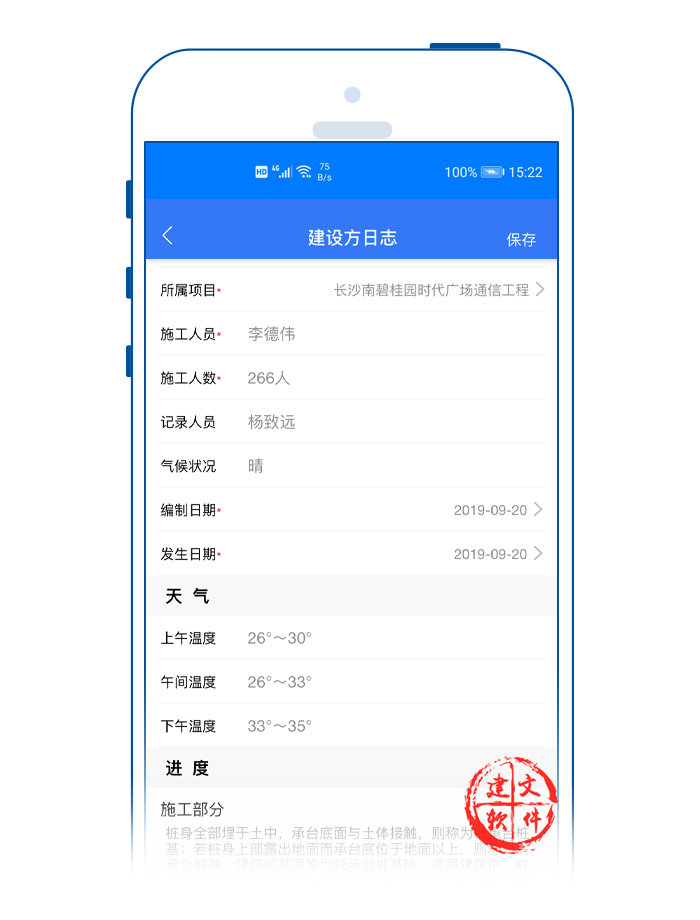 建文app,采用周報APP、月報APP、簡報APP等多種上報周期與格式,全面總結(jié)與反應(yīng)施工現(xiàn)場情況,包括:
