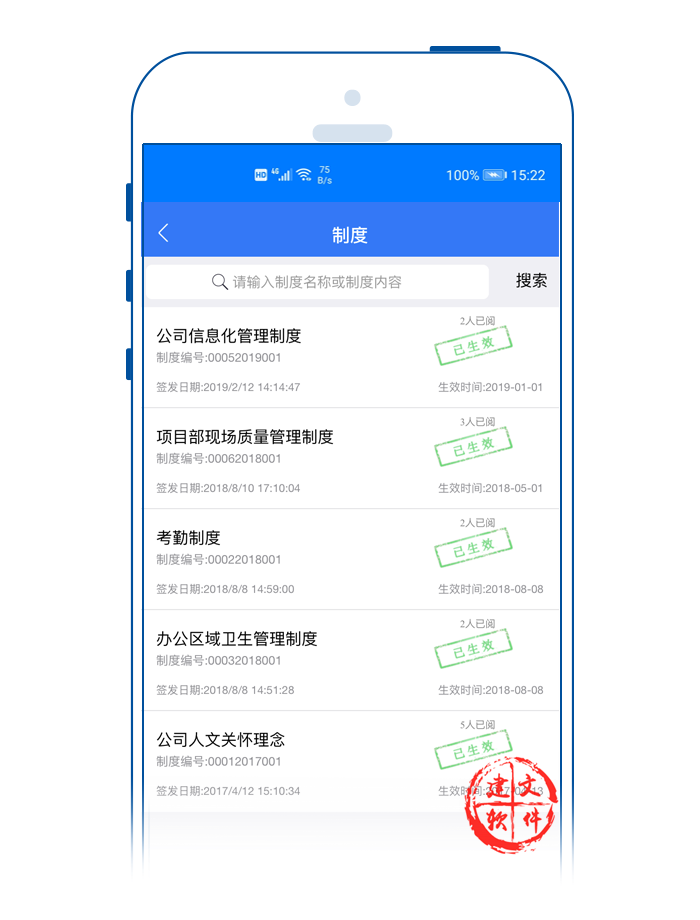 建文制度管理APP,支持在手機APP上進行制度查詢、制度編制、信息分析等功能,突出企業(yè)制度與流程申請、項目管理的關(guān)聯(lián),實現(xiàn)了制度管理橫向縱向全流程貫通,推進企業(yè)制度管理一體化、標(biāo)準(zhǔn)化、精細(xì)化、信息化和國際化,最終形成統(tǒng)一高效、簡約特色管理模式的重要基礎(chǔ)。主要解決的問題: